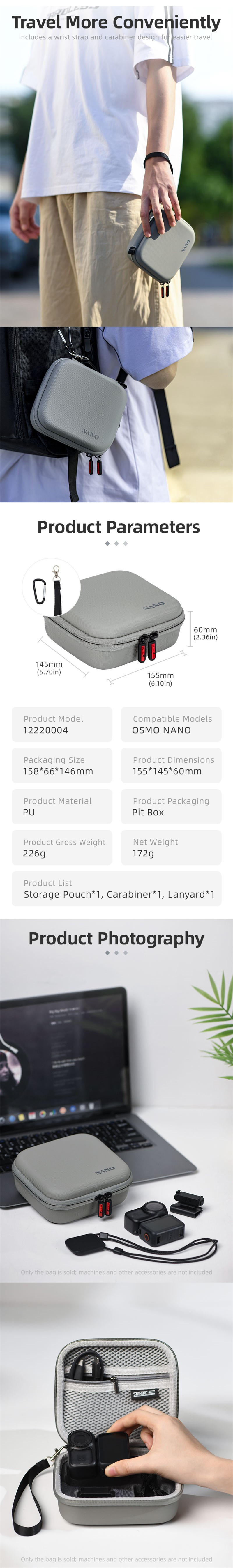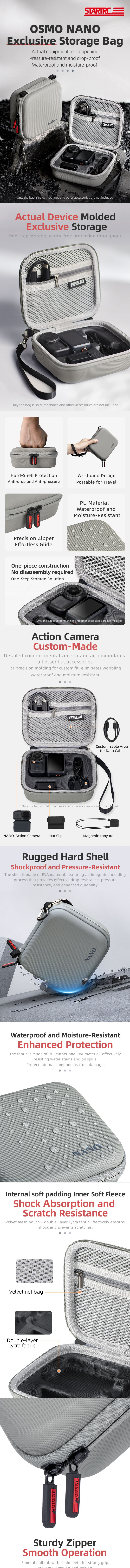 - STARTRC for OSMO NANO Exclusive Storage Bag  Actual device-molded hard shell. Custom-made, rugged, shockproof, pressure-resistant, waterproof. Enhanced protection, scratch resistance, and smooth operation.