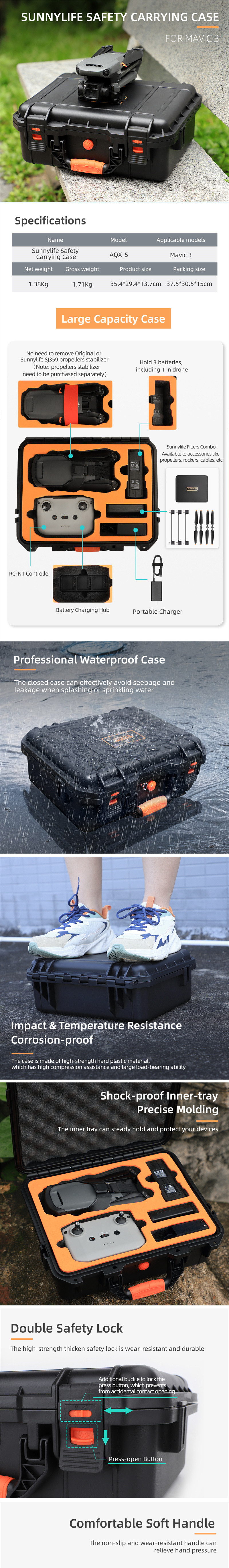 Safety Carrying Case Large Capacity Handbag Waterproof Hard Case Professional Bag Protective Accessories for Mavic 3 Sunnylife