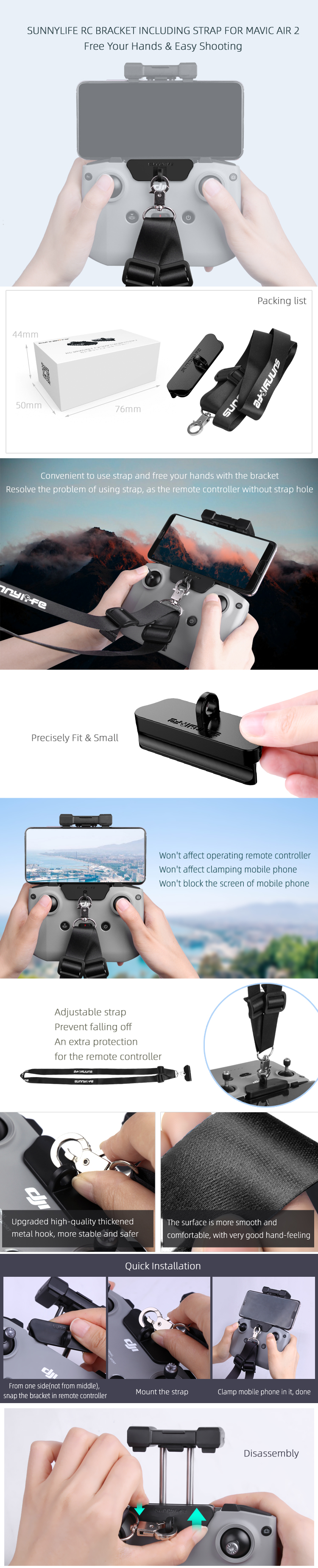 - Convenient to use strap directly and free your hands with the bracket.