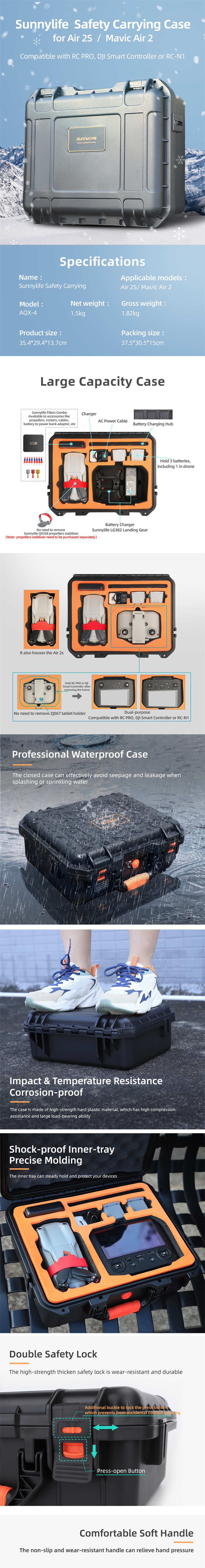 Safety Handbag Carrying Case Waterproof Hard Large Capacity Case Professional Bag Protective Accessories for Air 2S/ Mavic Air 2 Sunnylife