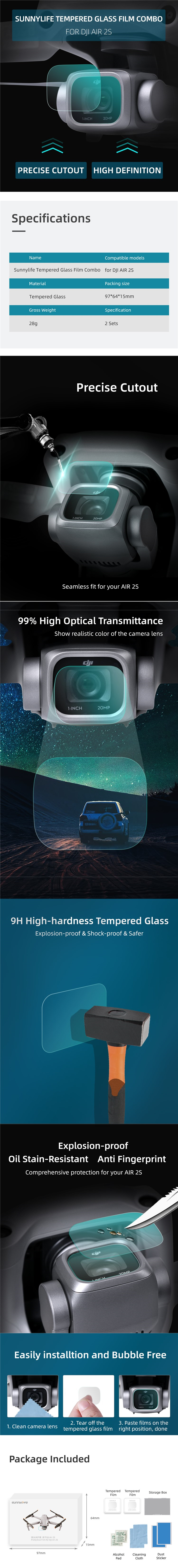 DJI Air 2S Lens Film 2 Sets HD Protective Tempered Glass Film Camera Lens Protector Accessory Sunnylife Spare Parts Combo