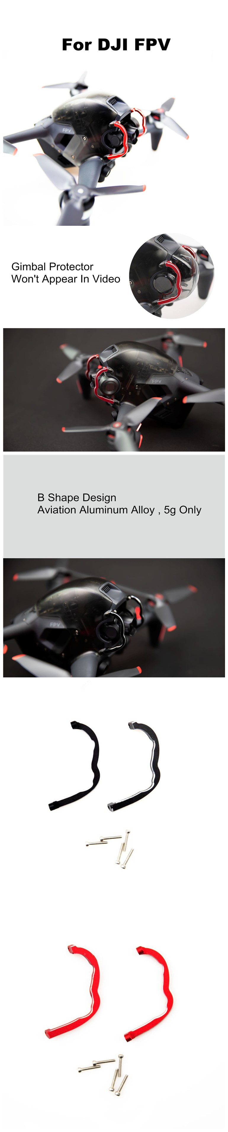 Gimbal Protector for DJI FPV Drone Accessories Kit Protectors Camera Guard Aviation Aluminum Alloy Spare Parts Combo Black Red  Air 2S
