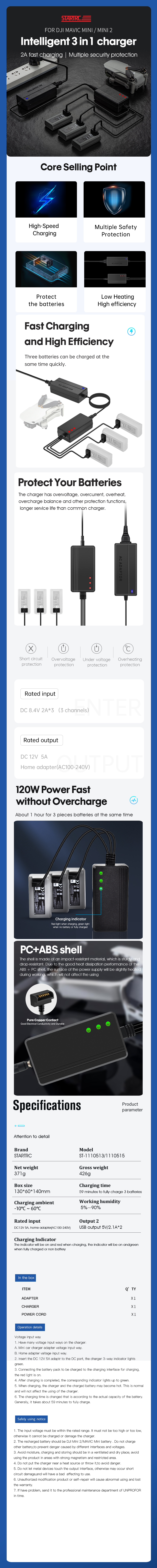 Battery Charger Hub for DJI Mini 2/SE/Mavic Drone STARTRC Fast Charging Smart Quick Intelligent 3 in 1 Home EU Accessory Parts