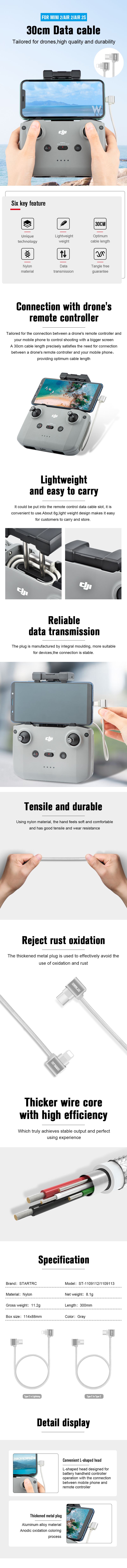 For DJI MINI 2/ FPV/ POCKET 2 / MAVIC AIR 2S/Air 2/ OSMO Pocket Nylon Data Cable 30cm TYPE C IOS Wire Flex Line 1pc