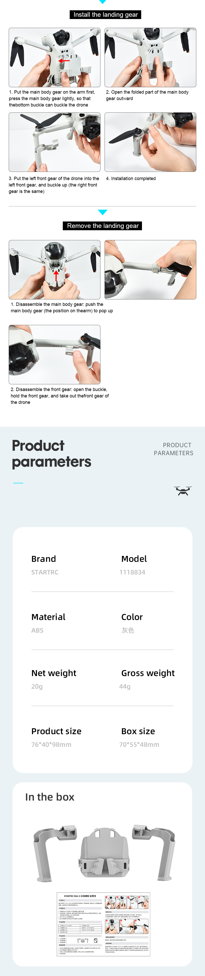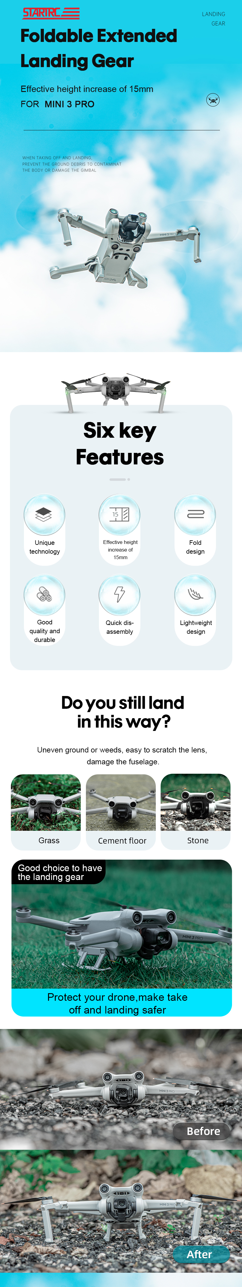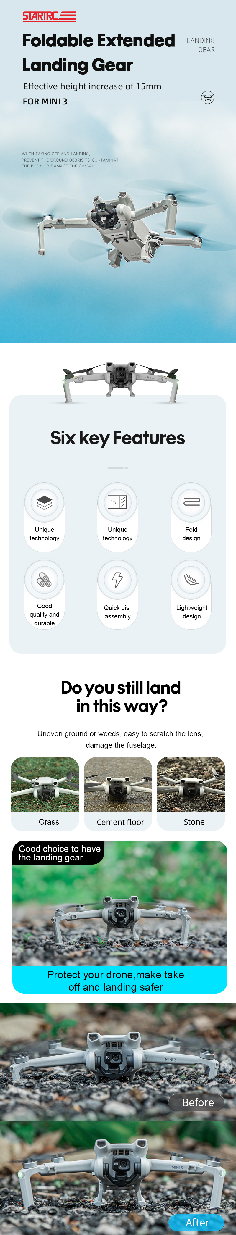 - STARTRC Foldable Landing Gear for Mini 3 Pro and Mini 3 to reduce impact and protect PTZ cameras;