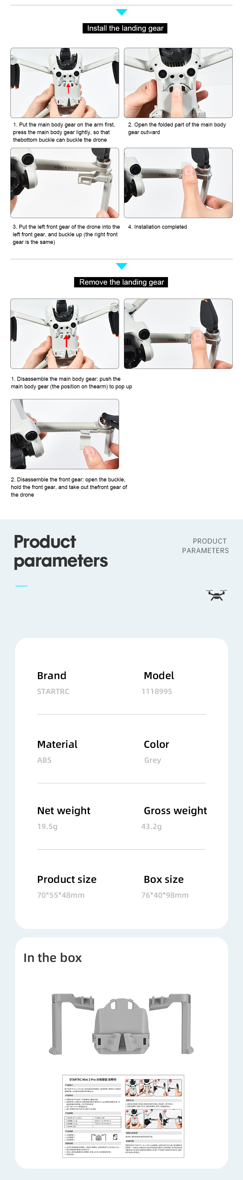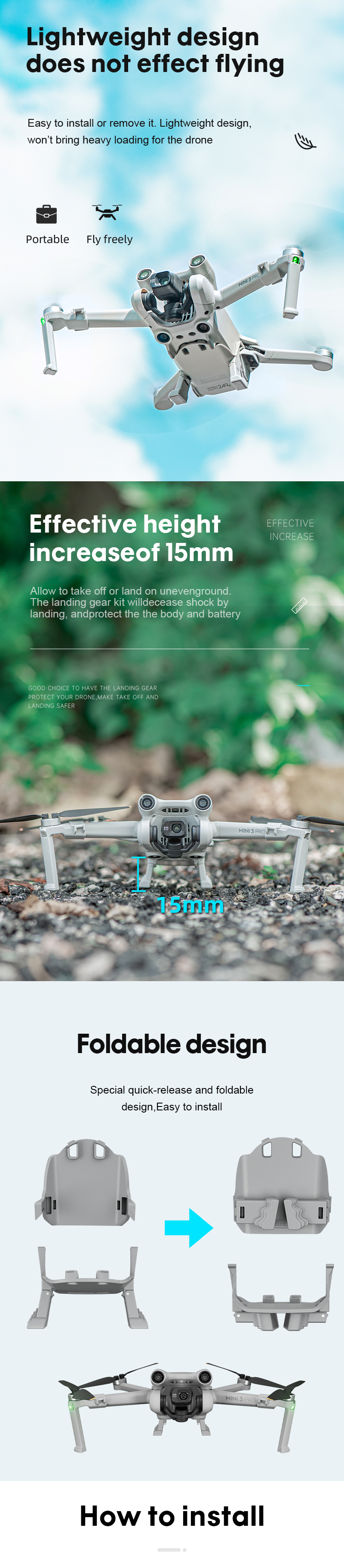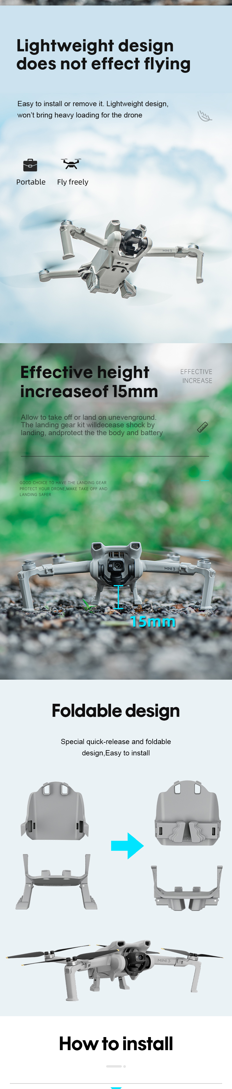 - STARTRC Foldable Landing Gear for Mini 3 Pro and Mini 3 to reduce impact and protect PTZ cameras;