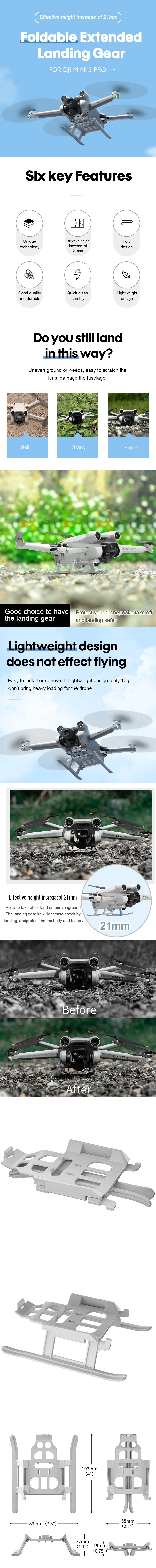 Foldable Landing Gear for DJI Mini 3 Pro Drone Extended Leg Protector Gimbal Foot Quick Release Undercarriage Skid Accessories