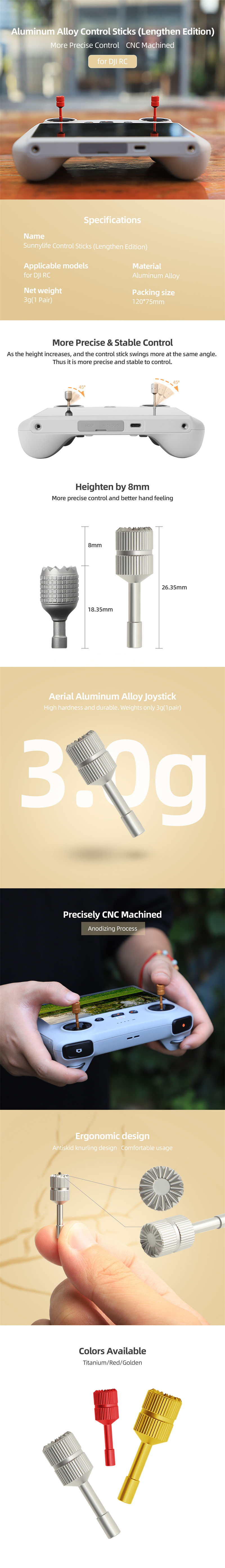 For DJI RC Mini 3 Pro Control Sticks Aluminum Alloy Thumb Rocker Joysticks Lever Lengthen Controller Sunnylife Accessories Parts