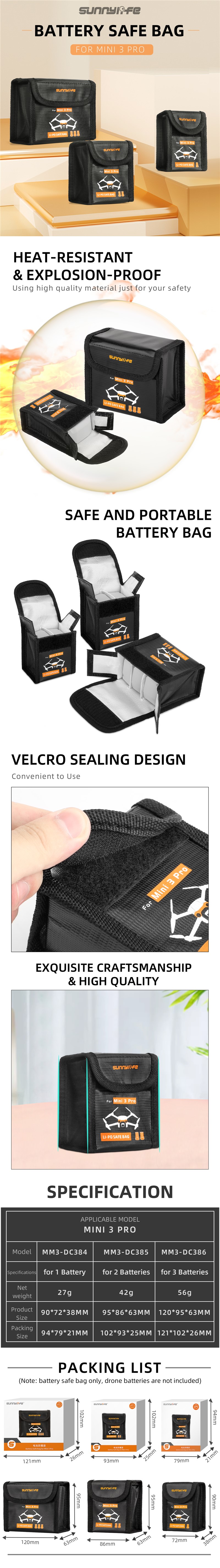 For Mini 3 Pro Battery Safe Bag Protective Package Storage Box Explosion-proof Protection Case Set Drone Accessory Parts Combo