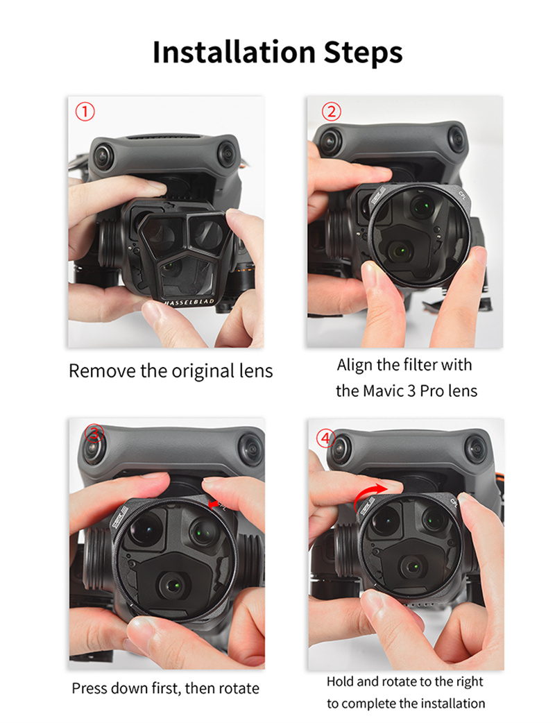 - The snap on design for quick disassembly and assembly,The single weight of the filter is only 6.2G, with high-precision adaptation and will not affect flight performance;