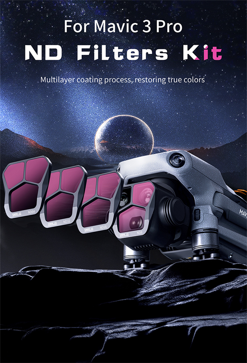 - ND filter designed specifically for MAVIC 3 Pro drones,Adopting multi-layer coating and dimming,ND filter can prevent excessive light exposure, making the image have appropriate dynamic blur;