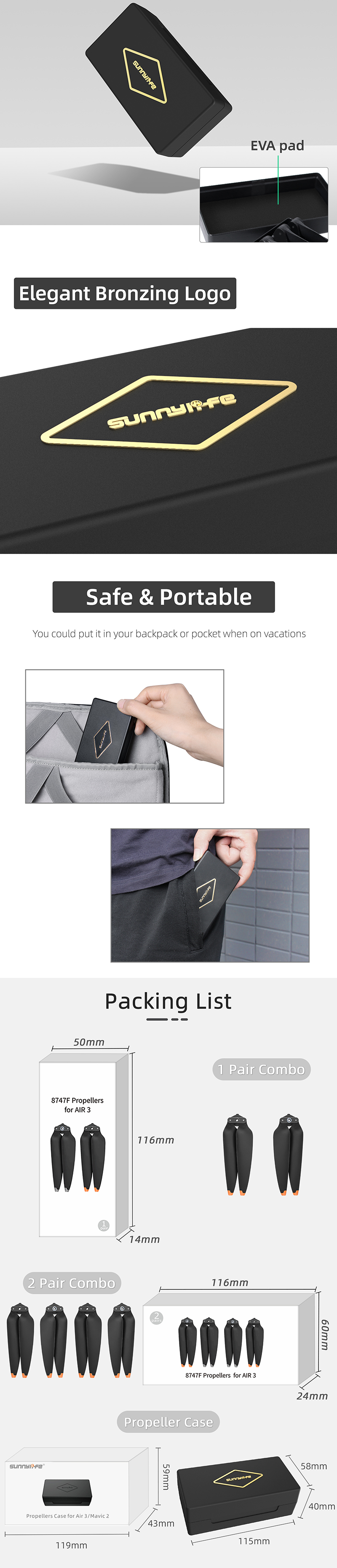 - Crush-proof and dust-proof propeller case for Air 3.