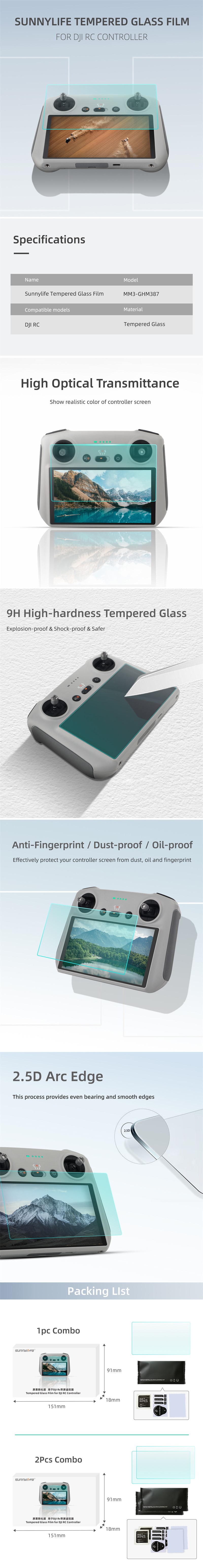 Screen Toughened Film Protective for DJI RC Mini 3 Pro Controller Steel Tempered Glassprotector Accessory Parts Sunnylife Remote