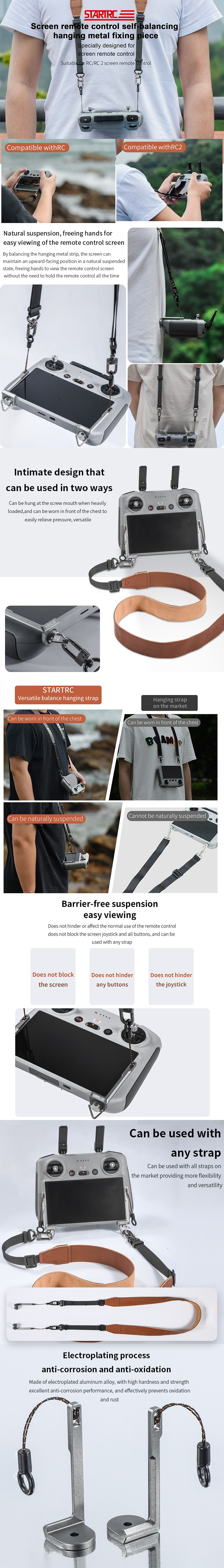 - Screen remote control self-balancing hanging metal fixing piece,Compatible with RC and RC2,Natural suspension, freeing hands for easy viewing of the remote control screen,Intimate design that Can be worn in front of the chest And naturally suspended,Barrier-free suspension easy viewing;