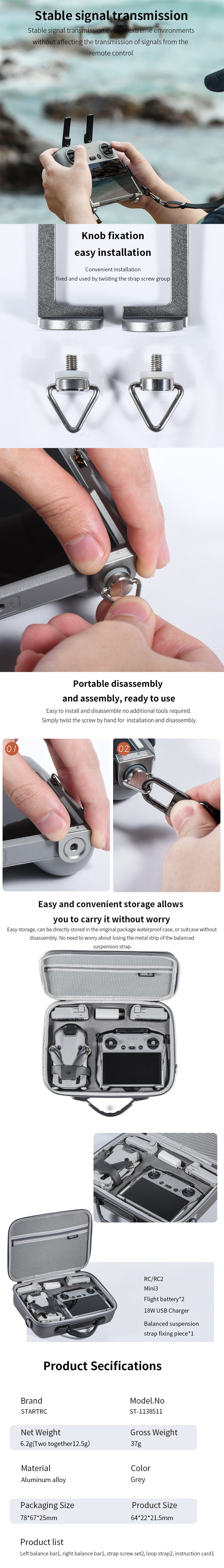 STARTRC Screen remote control self-balancing hanging metal fixing piece suitable for DJI Mavic 3/Air3/Mini3/4 Pro rope RC 2 hanging RC accessories