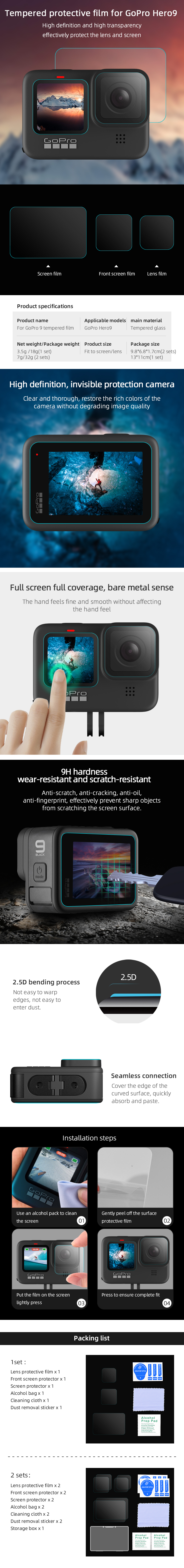 Protective Film for GoPro Hero9 HD Tempered Glass Screen Protector forGoPro Hero9 Sports Camera Accessories