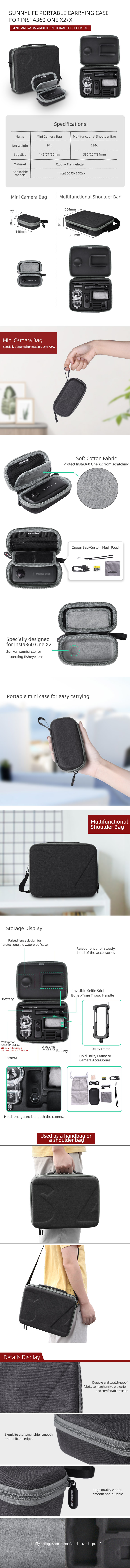 - Mini camera bag is especially designed for Insta360 One X2/X.