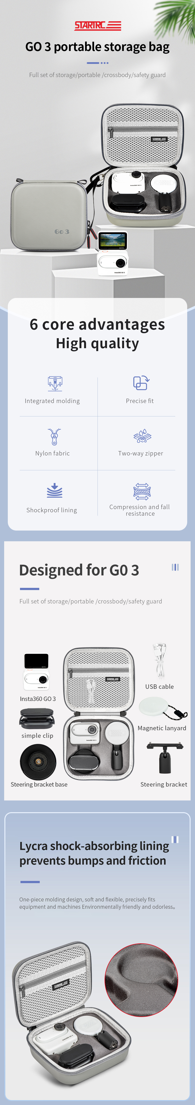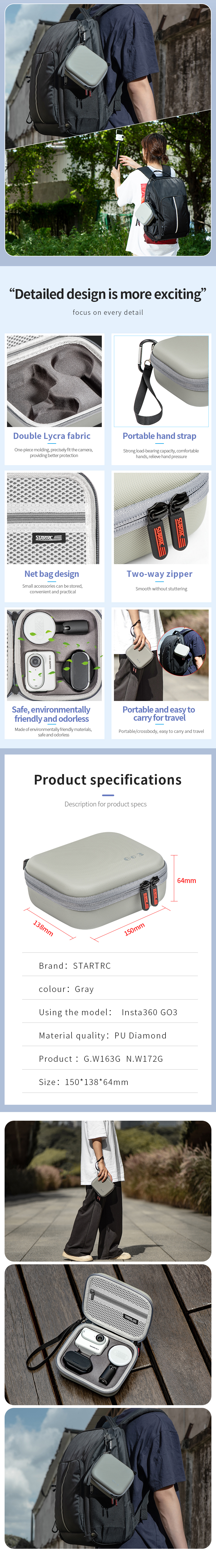 - Suitable for Insta360 GO 3 portable, net design, two-way zipper, mountaineering buckle, outdoor convenience.