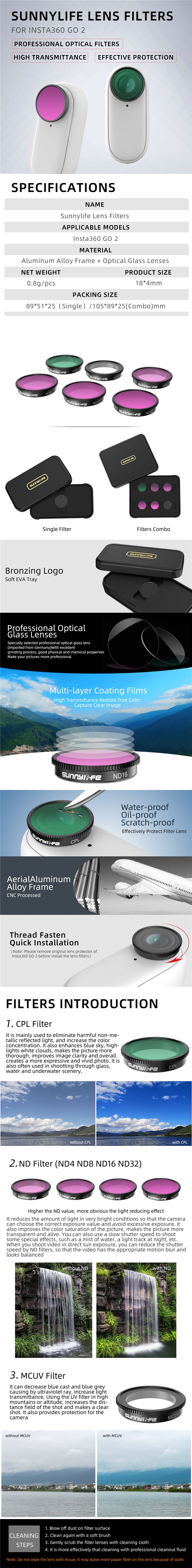 Sunnylife Lens Filter MCUV CPL Filters ND4 ND8 ND16 ND32 for Insta360 GO 2