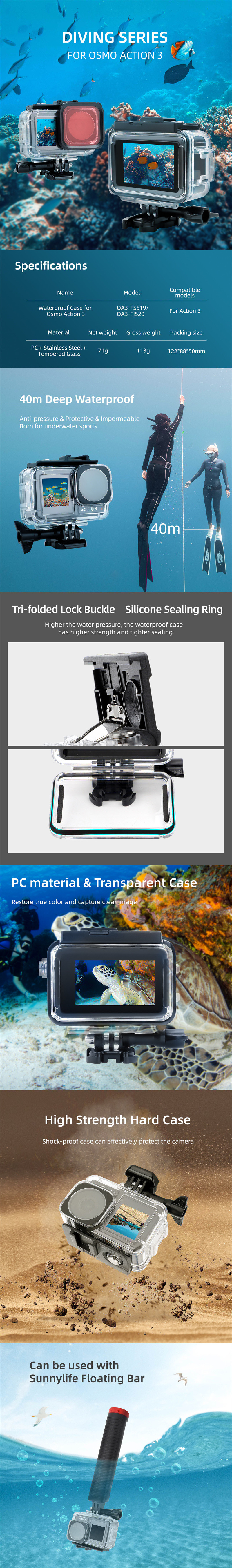 For DJI Osmo Action 3 Waterproof Case Colors Bag Diving Filters Camera 40m Underwater Protective Part Housing Shell Accessories
