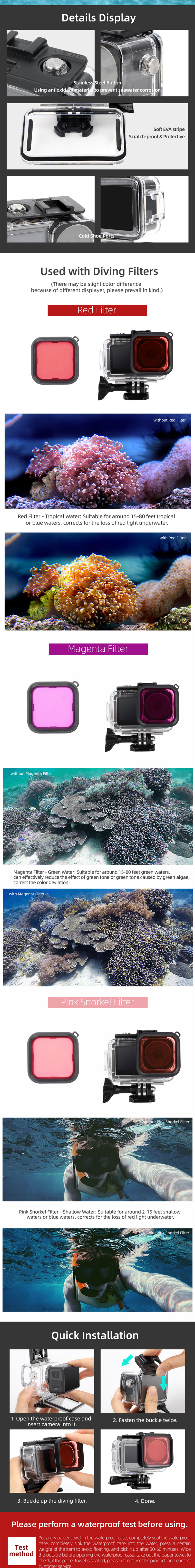 - 40m Waterproof. Higher the water pressure, the waterproof case has higher strength and tighter sealing.