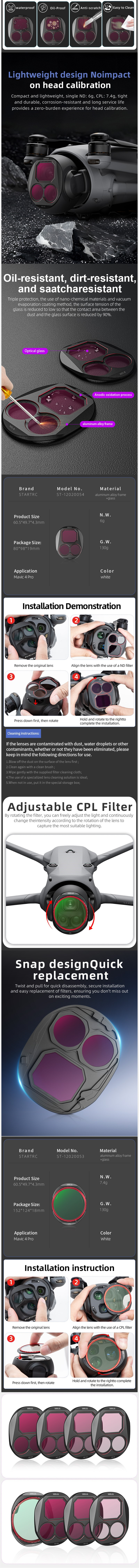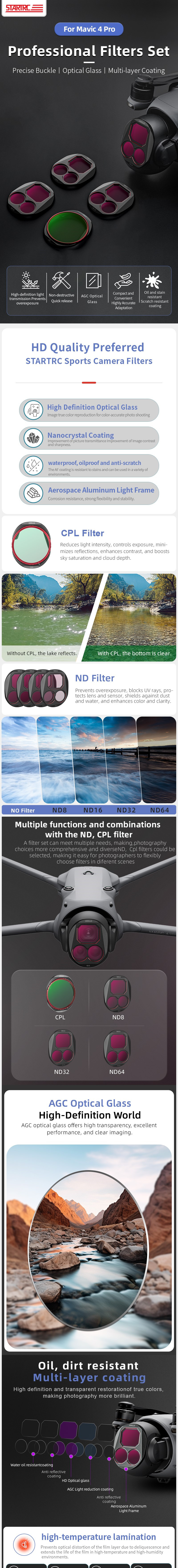 -  STARTRC For Mavic 4 Pro Professional Filters SetHD AGC optical ND/CPL filters: oil, dirt, scratch-resistant, lightweight, multi-coated.