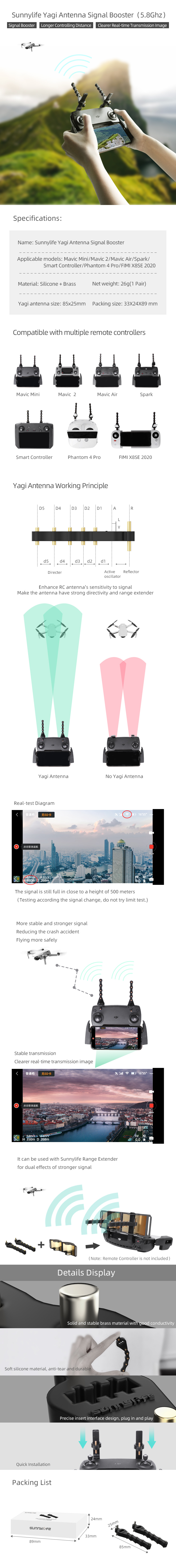 - Yagi Antenna Signal Booster for Mavic Mini/ Mavic 2/Mavic Air/Spark/Smart Controller/Phantom 4 Pro/FIMI X8SE 2020