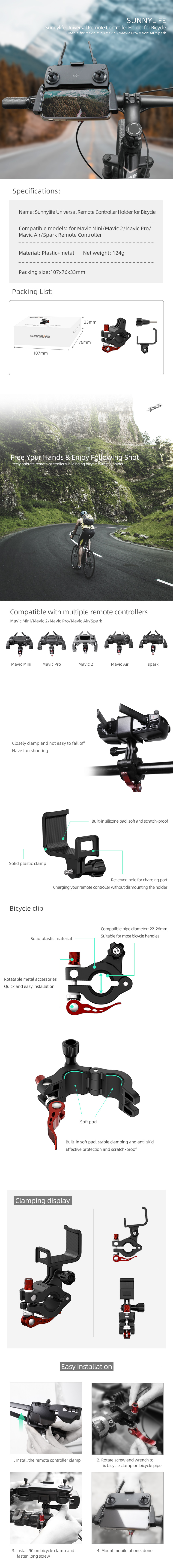 - Sunnylife Universal Remote Controller Holder on Bicycle for Mavic Mini/Mavic 2/Mavic Pro/Mavic Air/Spark