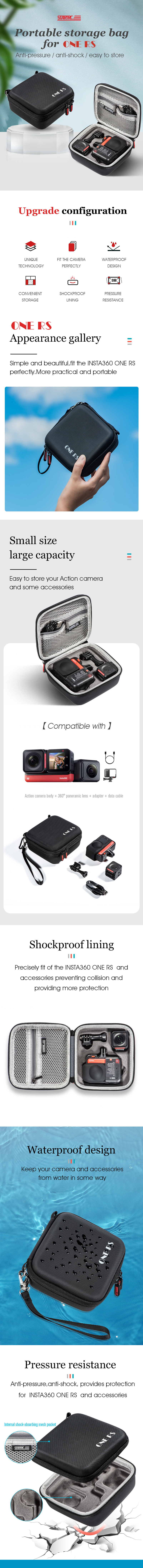 - Designed for the Insta360 ONE RS stand-alone one-inch panoramic action camera, easily storing all accessories,effectively protect the camera;