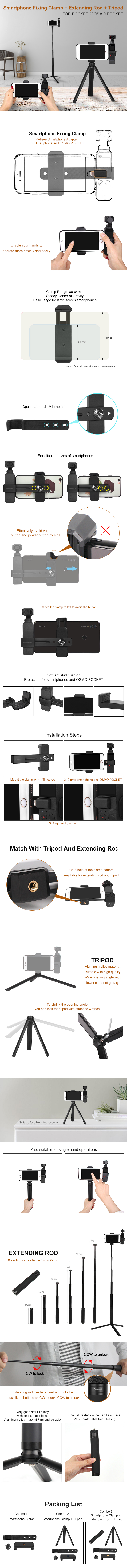 Phone Fixing Clamp + Extending Rod + Tripod for POCKET 2 / OSMO POCKET