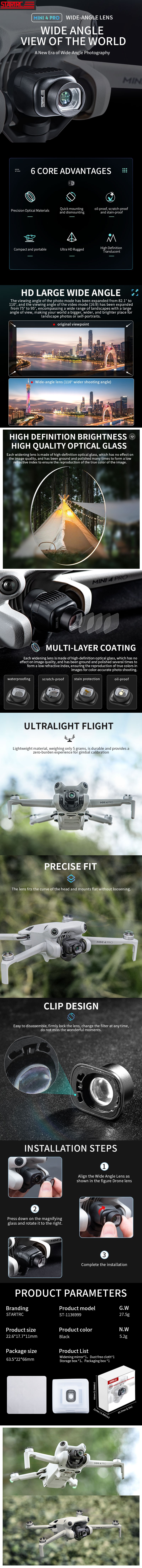 -Mini 4 pro wide-angle lens,Wide Angle View of the World,HD Large Wide Angle,High Definition Brightness High Quality Optical Glass,Multi-layer coating,ultralight flight,Precise fit,Clip design;