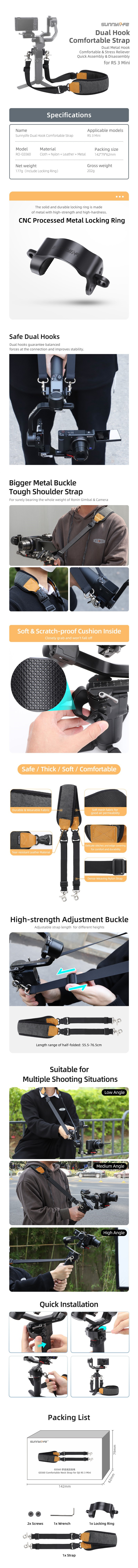 Sunnylife Dual Hook Strap for DJI RS 3 Mini Accessories Stress Reliever Shoulder Double Comfortable Belt Stabilizer Neck Lanyard