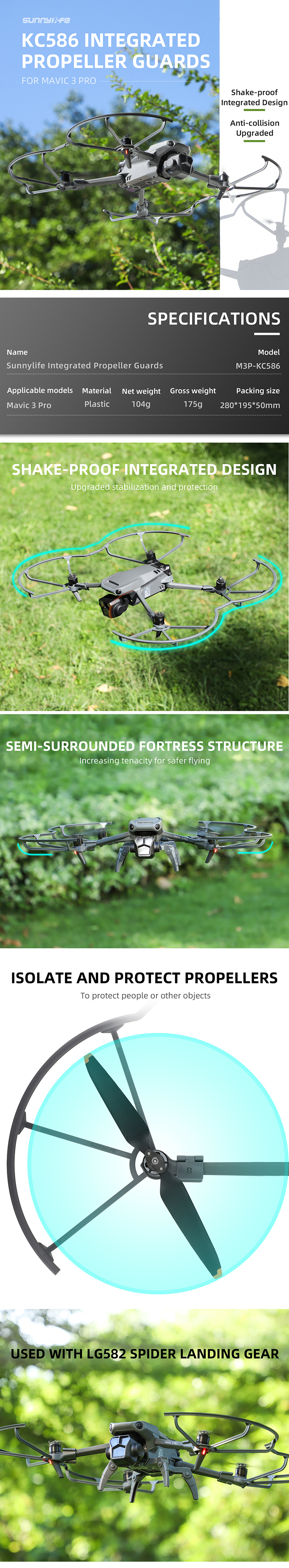 - Used with Sunnylife LG582 spider landing gear. Stable Integrated Propellers Guard: anti-shake structure & safer protective ring;